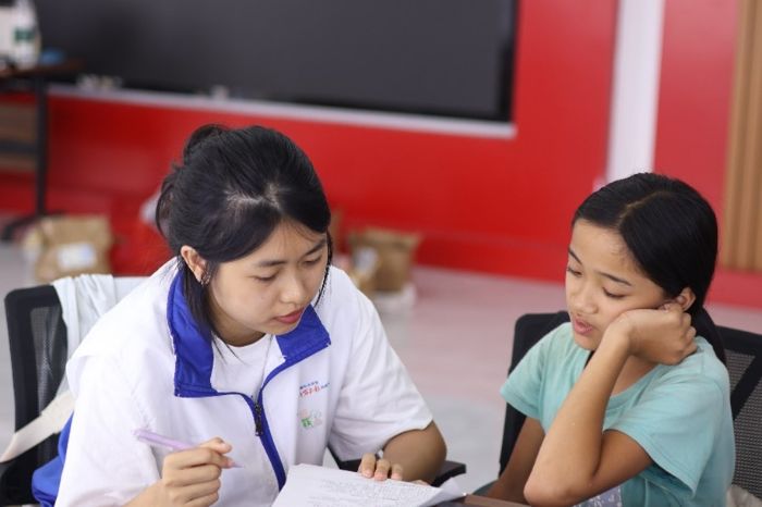 下午3:00,唐韻老師手握一本《小王子》,準時走進了教室。帶學生們領略B612星球的獨特風景,學習書中對人物的塑造、情節的設計、情感的流露。共讀過后,唐韻老師鼓勵學生們一起寫下一個完整的故事,將個人情感體驗轉化為文字表達,探索自我價值與情感世界。在寫故事的時候,有些學生擅長感受,卻拙于表達。這時,隊員們便會俯下身去,輕聲詢問學生們的困惑,再循循善誘地啟發創作靈感。那些天馬行空的想象,都落在了張張白紙上,成為了學生們用真心澆筑的、最驕傲的作品。