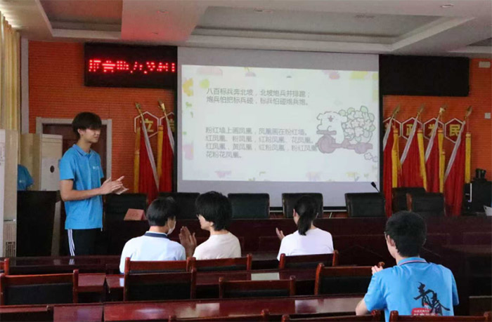 圖為實踐隊員在文化禮堂進行推普小課堂活動。施星宇、何雨凱供圖