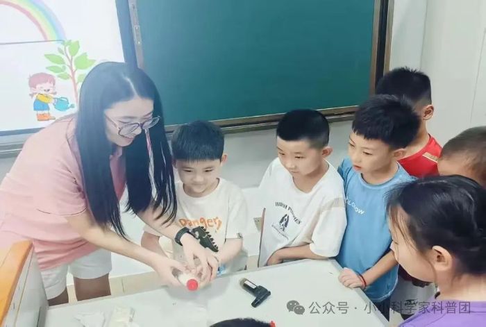 在實驗環節,煙霧泡泡實驗是最受矚目的亮點。實踐團成員手持特制工具,將煙霧與泡泡液巧妙融合,輕輕一擠,泡泡便裹挾著白色煙霧緩緩冒出。孩子們看著泡泡,伸手輕觸,泡泡破裂的瞬間,煙霧如輕紗般散開,引得陣陣驚呼與歡笑。這個實驗不僅以奇妙的視覺效果展現了氣體與薄膜的物理特性,更讓孩子們直觀感受到大自然中云霧形成的相似原理,在趣味互動中悄然播下探索科學的種子。