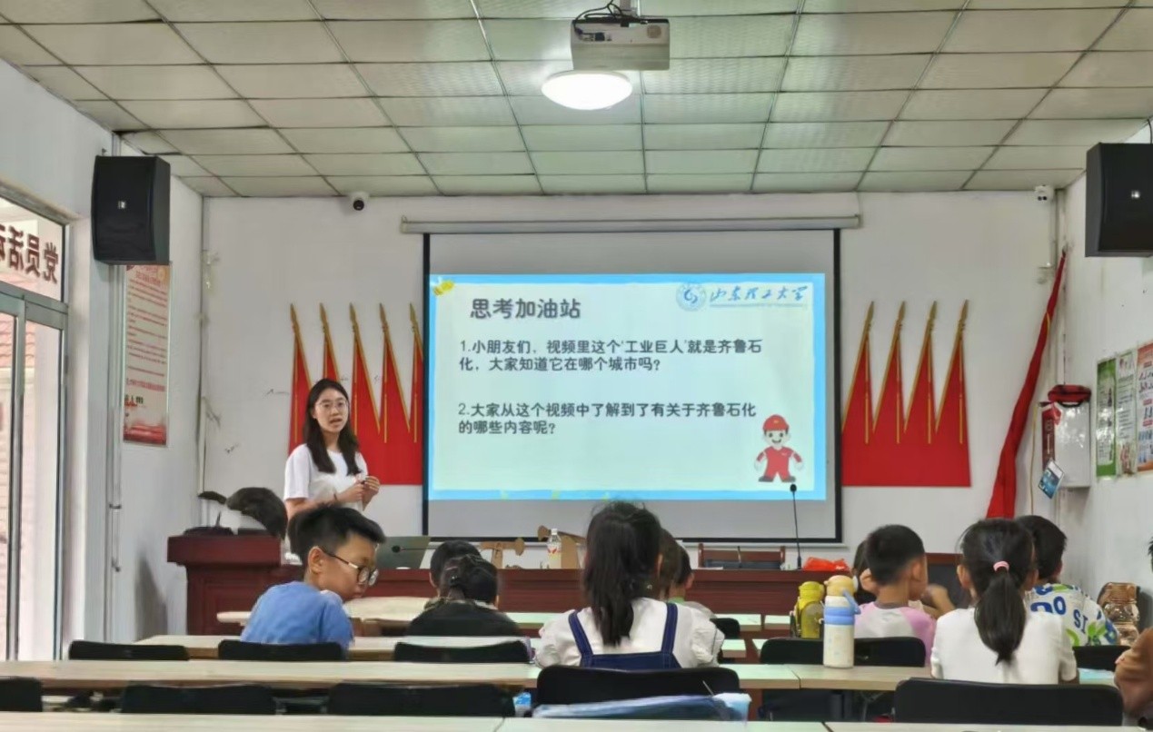 紅色石油精神走進鄉村課堂,實踐團講師曹孟肖、孫銘悅以石油工業發展史為主題,系統講解"6907‘戰天斗地·惟實勵新’"與"齊魯石化‘塔林丹心·能源報國’"兩大精神。課程通過工程師劉長厚事跡講述、企業創業影像展播等形式,呈現石油工人攻堅歷程。將“苦干實干”、“三老四嚴”、 “能源報國”等石油精神的核心內涵傳遞給了在場的青少年,引導學生理解能源安全與國家發展的關聯。