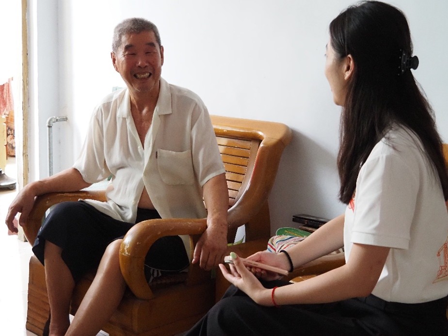 圖為孫銘悅采訪曹金勝爺爺 山東理工大學李穎能提供
