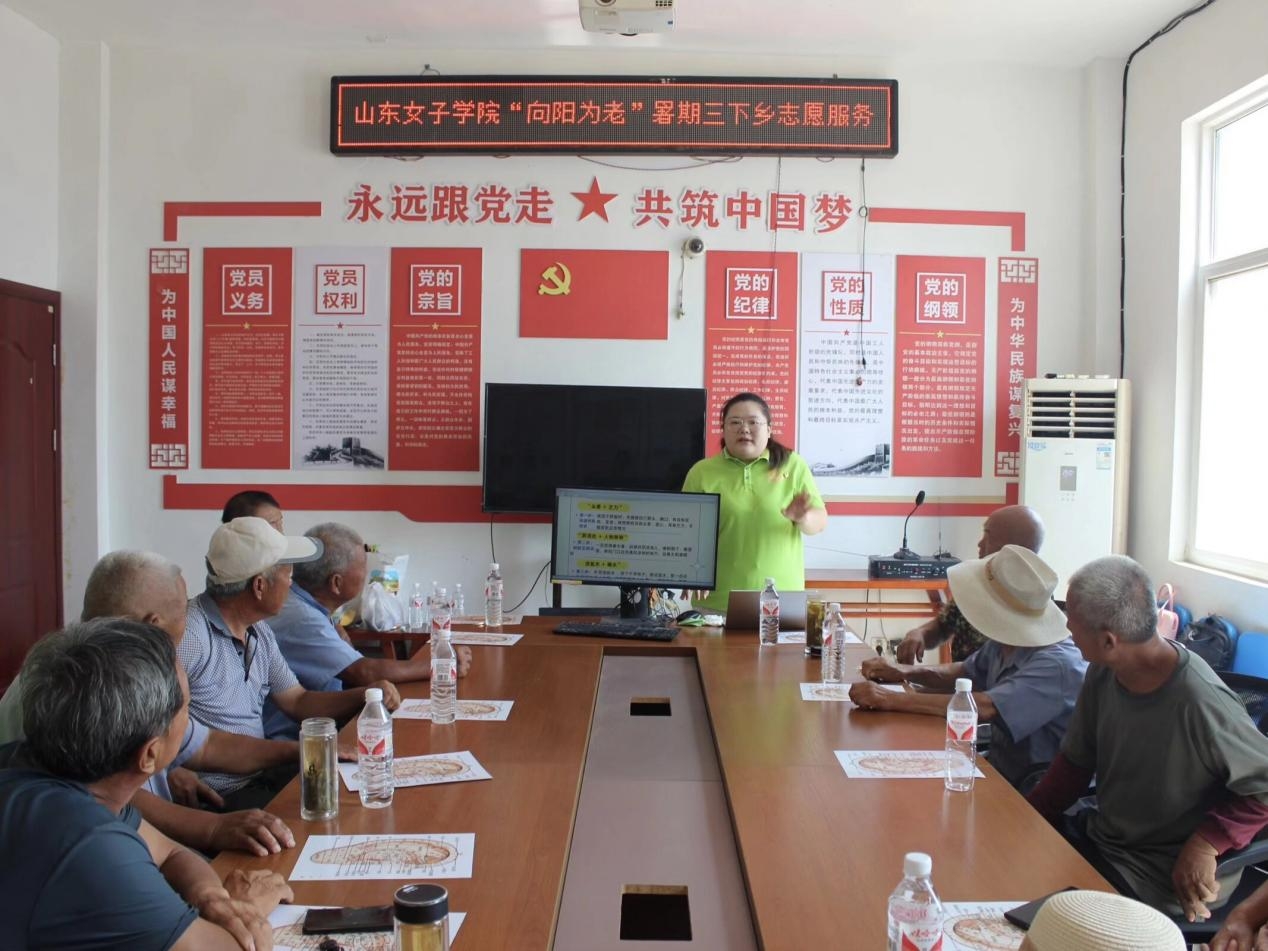 2025年7月16日,(山東女子學院)健康養老學院“向陽為老”志愿服務隊走進山東省濟寧市泗水縣西仲都村開展暑期防暑、老年人常見病、認知癥等系列活動,為鄉村老年人的晚年生活增添了關懷與保障。