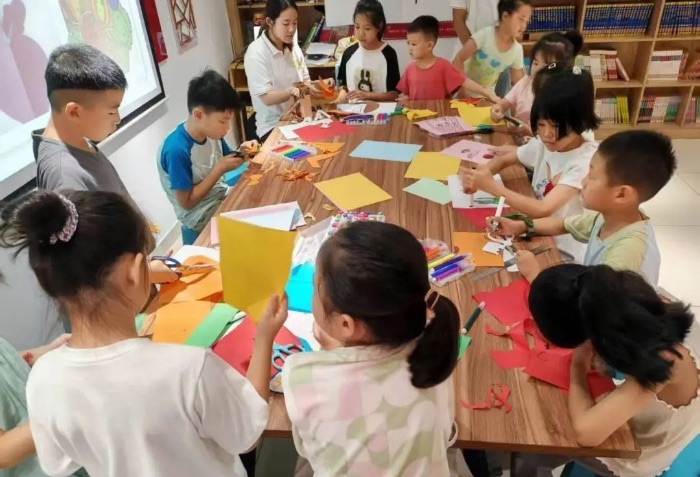 講完繪本,志愿者老師要求小朋友用卡紙做出自己心目中的健康晚餐,小朋友們奇思妙想,心靈手巧,做出各種各樣的健康食物,作品栩栩如生。在制作的過程中志愿者的哥哥姐姐和小朋友一起探討制作健康晚餐,小朋友有之間也互幫互助,共創(chuàng)作品。