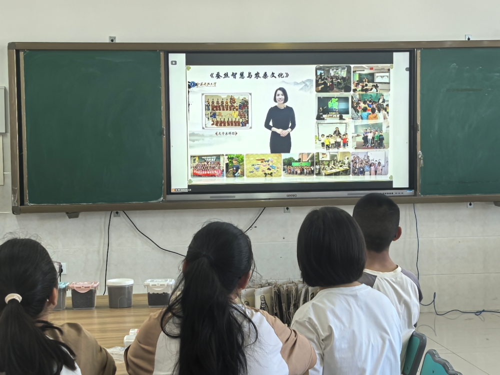 云端探桑:天地對話與扇舞丹心 第二日,視野從方寸蠶室拓展至浩瀚蒼穹。一段精心準備的“撐天”視頻,將孩子們引入“航空蠶—秋豐白玉”的奇妙世界。當現代科技與傳統蠶桑在太空相遇,古老非遺迸發出的時代強音深深震撼了年輕的心靈。