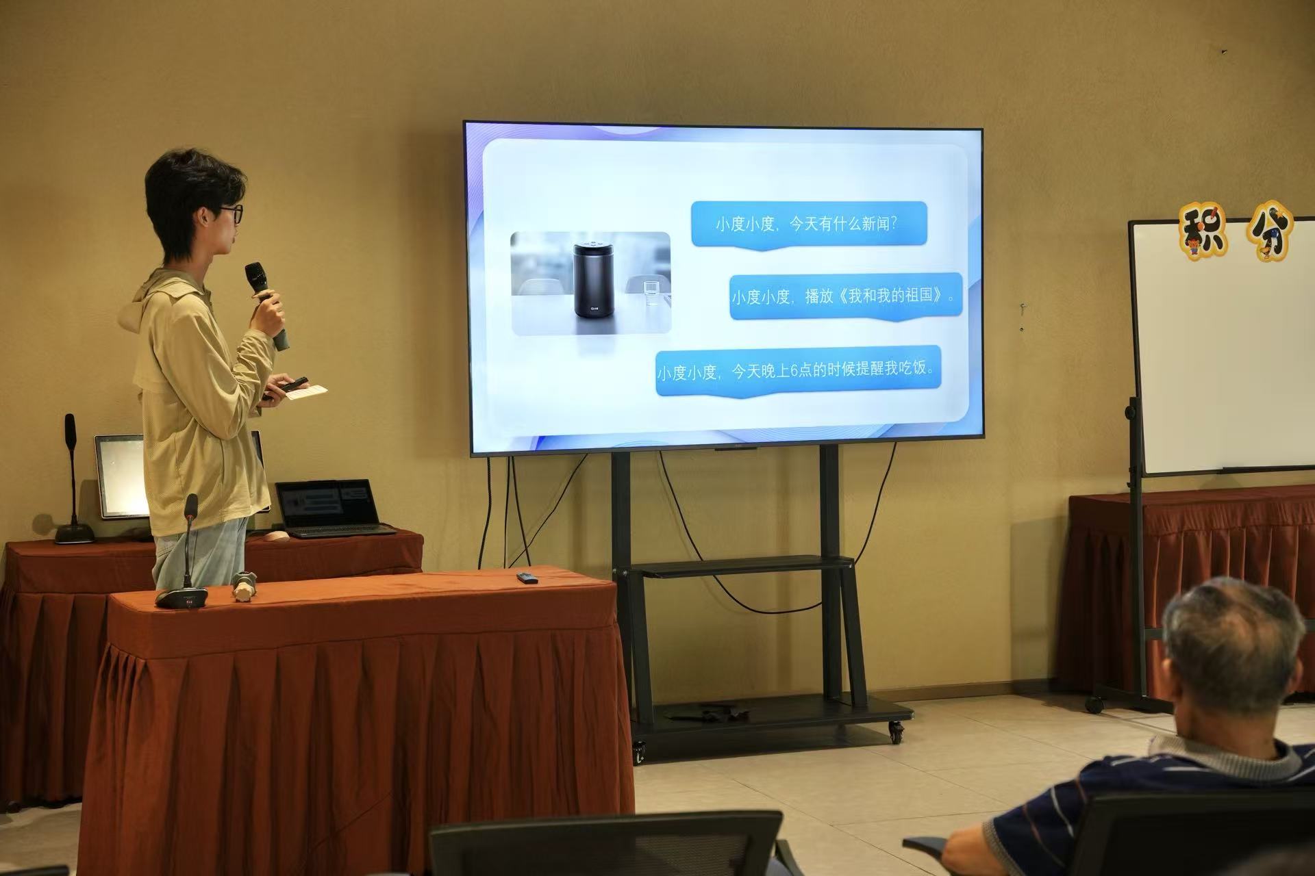 智慧家居體驗(yàn)與科普環(huán)節(jié)中,隊(duì)員們通過(guò)現(xiàn)場(chǎng)演示智能音箱的語(yǔ)音控制功能,展示如何通過(guò)聲控指令完成播放歌曲、查詢天氣、設(shè)置提醒等操作;智能藥盒的定時(shí)提醒功能和健康手監(jiān)測(cè)設(shè)備的使用演示,讓老人們直觀感受到科技對(duì)養(yǎng)老生活的實(shí)際助益。“用說(shuō)話就能控制家電,這對(duì)我們老年人來(lái)說(shuō)太實(shí)用了!”陳奶奶興奮地表示。這些貼近生活的應(yīng)用展示,讓老年人真切體會(huì)到智慧家居不是遙不可及的概念,而是能夠提升生活質(zhì)量的實(shí)際工具。