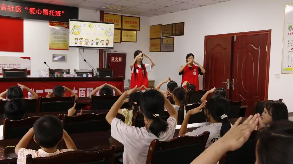 (圖為志愿者為蜀托班小朋友教學(xué)舞蹈《左手右手》彭泓源供圖)
