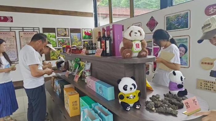 (調(diào)研團(tuán)隊(duì)參觀大古坪村特色產(chǎn)品展館)