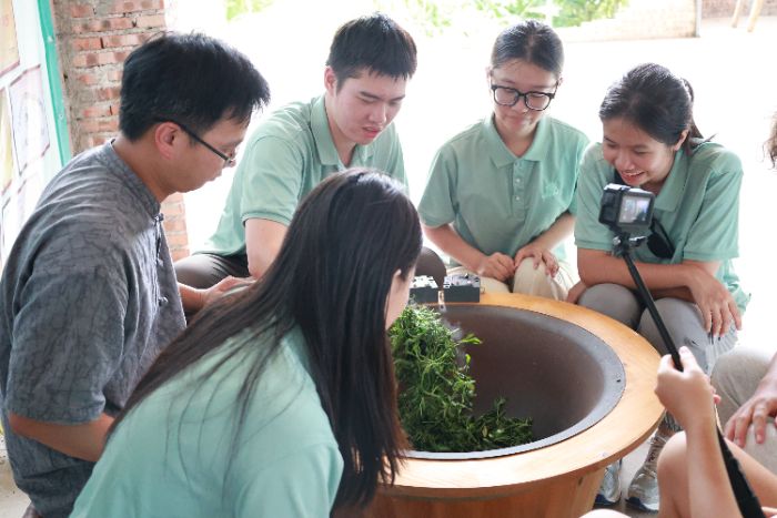 團(tuán)隊(duì)還專程赴中國客家博物館調(diào)研,溯源客家民系遷徙、奮斗及茶文化外傳的歷史,特別是客家僑胞將炒綠帶至海外的歷程。作為僑校學(xué)子,隊(duì)員們更加堅(jiān)定了以“茶”為橋、以融媒為媒介,向世界講述客家故事、傳播中華優(yōu)秀傳統(tǒng)文化的使命。