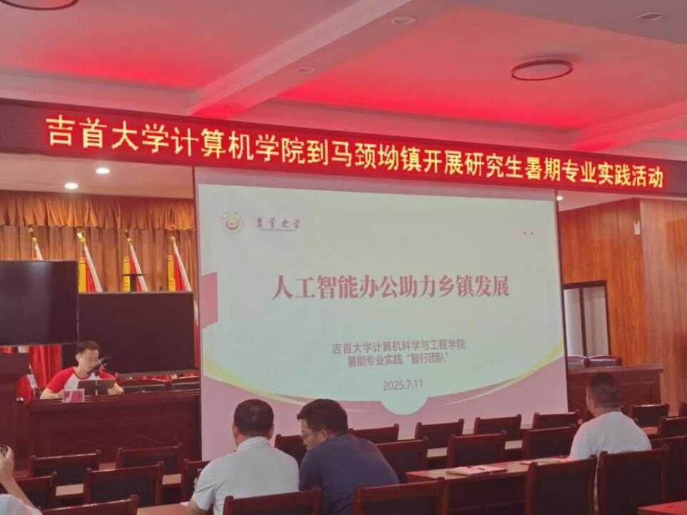 為響應(yīng)國(guó)家人工智能發(fā)展戰(zhàn)略,推動(dòng)智能技術(shù)與基層政務(wù)辦公深度融合,吉首大學(xué)計(jì)算機(jī)科學(xué)與工程學(xué)院暑期專業(yè)實(shí)踐“智行團(tuán)隊(duì)”在暑假期間走進(jìn)馬頸坳鎮(zhèn)政府,開展“人工智能辦公助力鄉(xiāng)鎮(zhèn)發(fā)展”專題講座。此次活動(dòng)由吉首大學(xué)計(jì)算機(jī)科學(xué)與工程學(xué)院張?jiān)洪L(zhǎng)、向老師帶隊(duì),聚焦基層工作人員在公文處理、數(shù)據(jù)統(tǒng)計(jì)等場(chǎng)景中的實(shí)際需求,由團(tuán)隊(duì)成員周鑫同學(xué)系統(tǒng)講解人工智能技術(shù)如何成為提升辦公效率的“利器”,團(tuán)隊(duì)還同步開展了人工智能辦公問卷調(diào)查,旨在更精準(zhǔn)地了解鄉(xiāng)鎮(zhèn)干部對(duì)智能辦公的需求與現(xiàn)狀。馬頸坳鎮(zhèn)政府各部門工作人員積極參與,共同探索人工智能在辦公領(lǐng)域的應(yīng)用與發(fā)展。