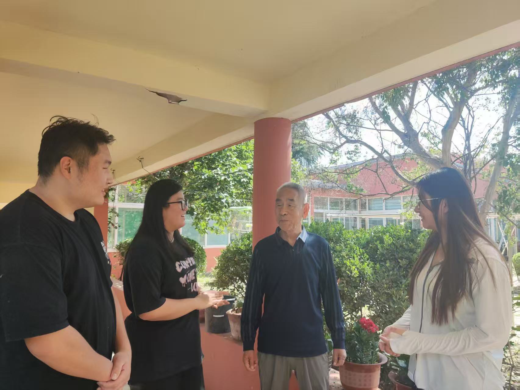 接下來與老人交流互動的環節中,他們更是展現著優秀大學生的風采,他們給老人講述成長路上的見聞,老人則是和這群熱情的年輕人交流著自己的生活趣事。