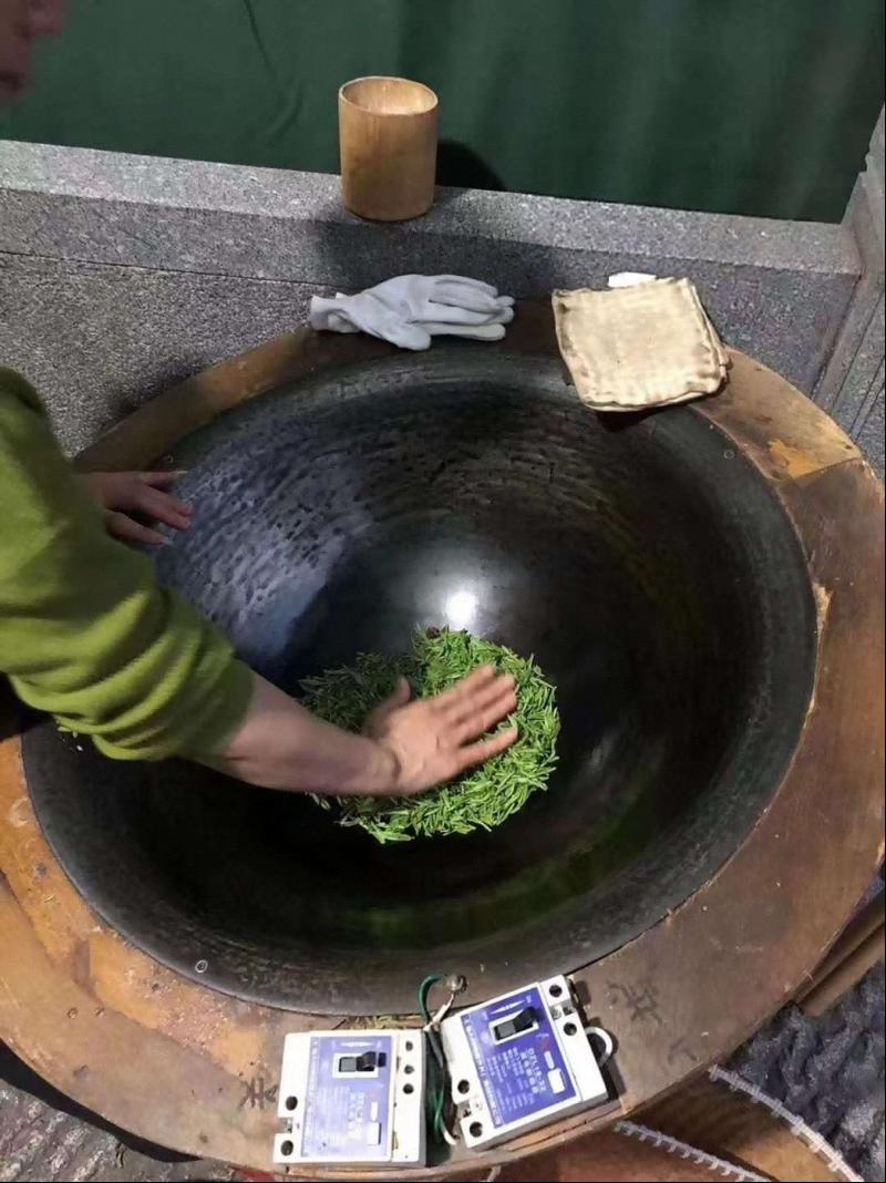 傳承與堅守:孫燕峰和弟弟孫琦自幼跟隨父輩學習傳統龍井茶制作技藝,都是國家級非物質文化遺產西湖龍井制作技藝的代表性傳承人。她向我們介紹了西湖龍井“色綠、香郁、味甘、形美” 的獨特品質要求,并演示了手工炒茶的“壓”、“拖”、“抖”等手法。