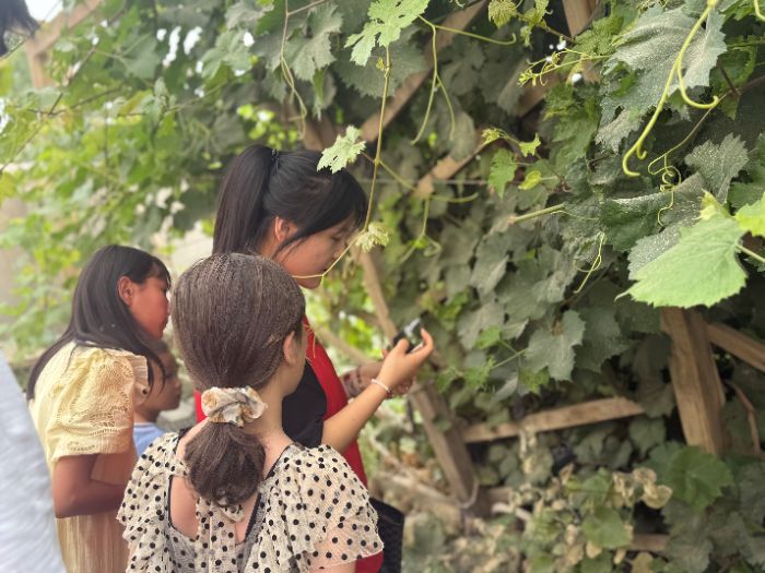 此圖為團隊在連隊居民家中觀察葡萄葉病害情況 董喬喬 供圖