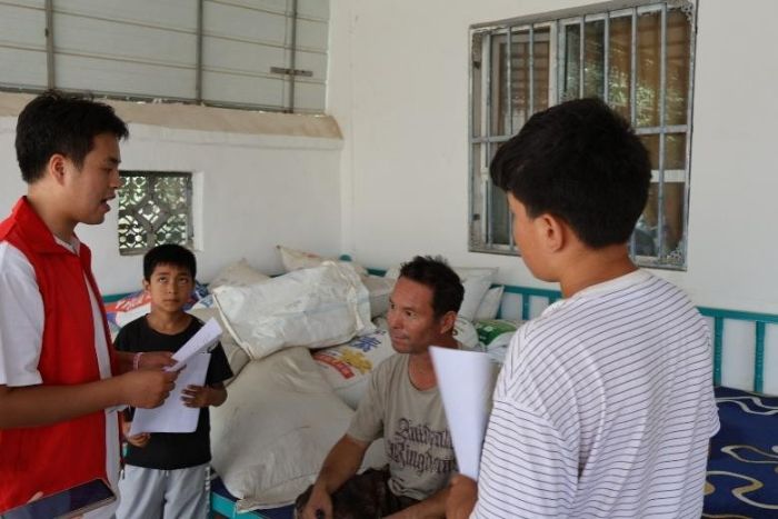 此圖為實踐隊員向居民進行訪談。曹渭荻供圖