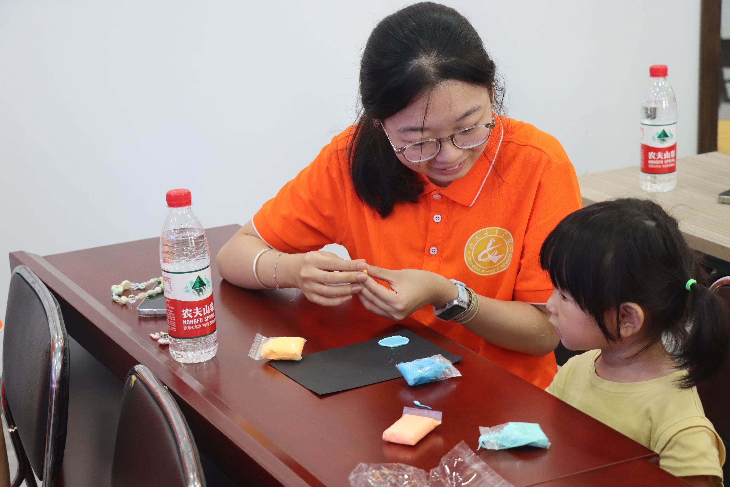 圖為志愿者指導孩子進行黏土創(chuàng)作。尹星雨 攝