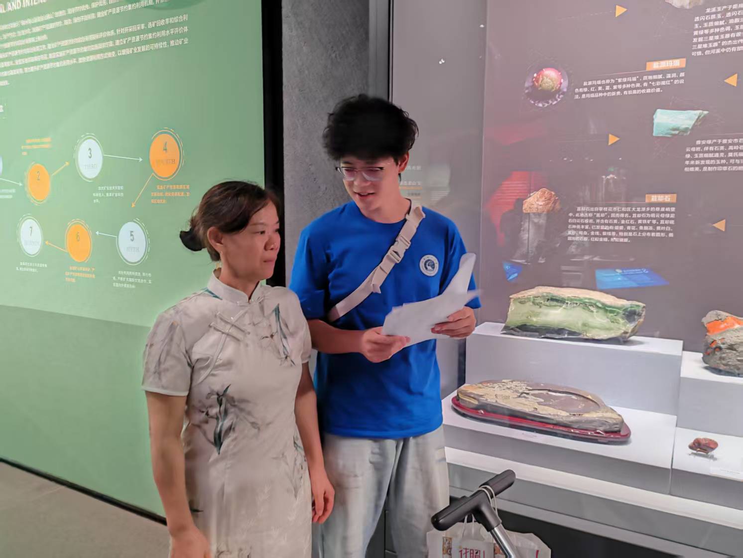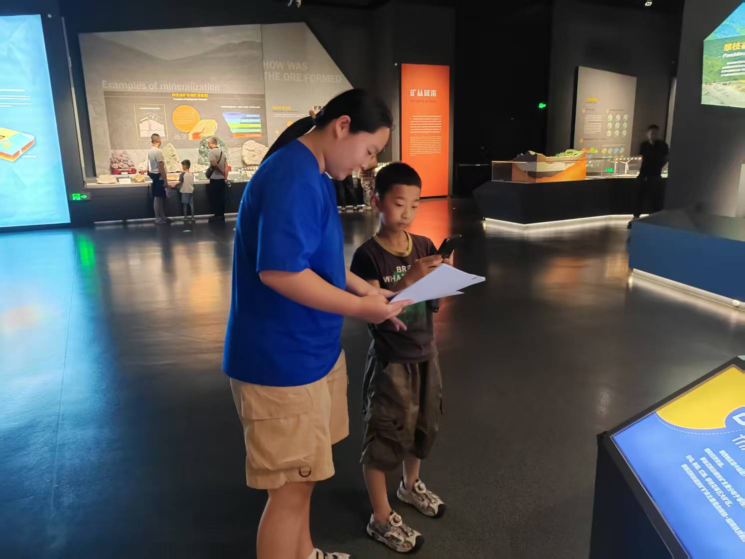 面向孩童群體:團隊成員李欣悅蹲下身,用手中的鈾礦勘探模型模擬“地質尋寶”,“小朋友們看,這個小錘子就像當年叔叔阿姨用的工具,我們要找到‘藏起來’的鈾礦石,才能為國家造‘大國盾牌’哦!”生動的比喻讓孩子們圍在模型旁,舉手提問“礦石怎么變成原子彈”“地質錘重不重”,現場充滿好奇與童趣。