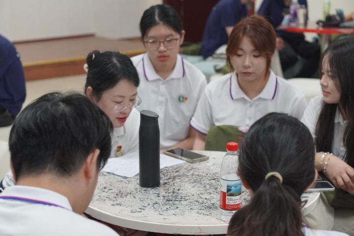 晚上國防教育和衛國戍邊宣講在基地點燃思想火炬。張云惠以“青春逢盛世,奮斗正當時”為題,詮釋奮斗需“志存高遠、堅韌實干”;黃建成解讀“新質戰斗力”,剖析國防現代化的底層邏輯。宣講后,肖建兵老師與團隊骨干圍坐,逐一審視課題雛形。從短視頻腳本的“紅色敘事”,到雙語講解的“文化適配”,再到紅色詩詞、油畫與歷史事件的融合,老師們精準把脈,敲定“以短視+雙語為翼,講好基地紅色故事”的方向。