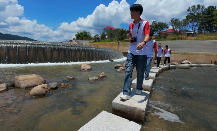 7月10日,實(shí)踐團(tuán)來到南昌市高新區(qū)鯉魚洲管理處。校黨委書記汪勝前給大家?guī)砹?ldquo;守護(hù)一方水土,傳承千年智慧--農(nóng)業(yè)灌溉對農(nóng)耕文化的影響”為主題的“行走的思政課”。在紅井村清華大學(xué)江西實(shí)驗(yàn)農(nóng)場的紅井旁,實(shí)踐團(tuán)成員通過聆聽蘇區(qū)時(shí)期毛澤東同志帶領(lǐng)軍民挖井抗旱的感人故事,將“吃水不忘挖井人”的紅色基因深植心田。實(shí)踐團(tuán)成員實(shí)地調(diào)研了高標(biāo)準(zhǔn)農(nóng)田和濕地修復(fù)項(xiàng)目,感受無人機(jī)巡田展現(xiàn)的科技魅力、生態(tài)修復(fù)彰顯的和諧之美。