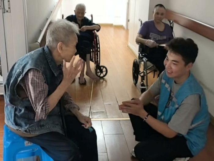 初見與相識清晨的陽光灑進院落,志愿者們輕手輕腳地走進養老院。在工作人員的引導下,他們熟悉環境,分組與老人們進行初次交流。“奶奶,我幫您把手機字體調大些”,“爺爺,我們一起去院子里走走”——真誠的對話很快拉近了彼此的距離。下午,志愿者們化身“臨時護工”,協助整理房間內務、陪老人散步曬太陽、教老人使用智能手機與家人視頻。