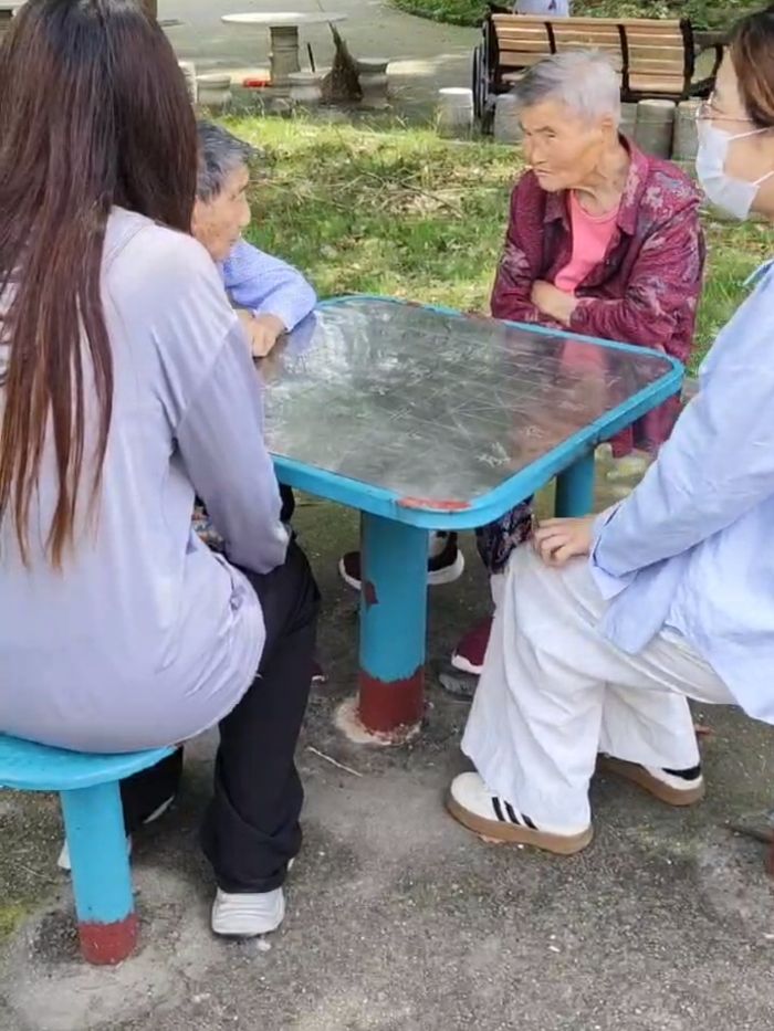 除了趣味手工,暖心陪伴更是此次活動(dòng)的重點(diǎn)。志愿者們提前將牛奶、水果、餅干精心分裝成愛(ài)心禮包,一一送到老人手中。隨后,隊(duì)員們分散在公寓的庭院、活動(dòng)室,與老人們嘮起家常。