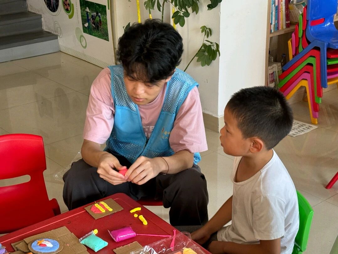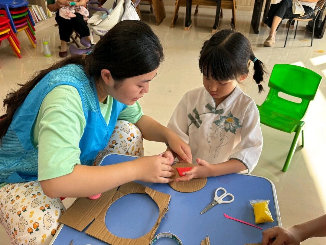 手工制作環(huán)節(jié),在志愿者的耐心指導(dǎo)下,小朋友們用硬紙板剪出圓形、星形等底板,利用黏土捏出火箭、衛(wèi)星等代表著祖國輝煌成就的造型,將自己對“兩彈一星”精神的理解融入作品之中,表達(dá)對祖國的熱愛與祝福,最終制作出一個個獨(dú)一無二的冰箱貼,現(xiàn)場歡聲笑語不斷。