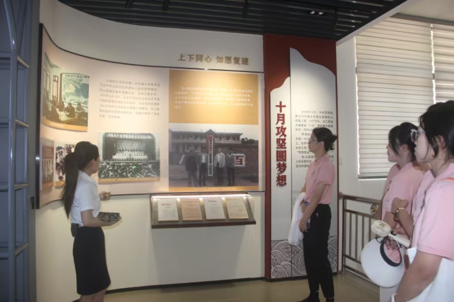 在"建設者名錄"展板前,志愿隊隊員們久久佇立。泛黃紙張上密密麻麻的姓名,大多標注著與他們相仿的青春年歲。那些陌生的名字背后,是無數年輕人將熱血融入山海的奉獻,是平凡人用執著書寫的不平凡傳奇。當夕陽余暉透過展館窗欞灑在名錄上,時光仿佛在此刻交匯,兩代青年跨越半個世紀的精神共鳴在此刻悄然生長。