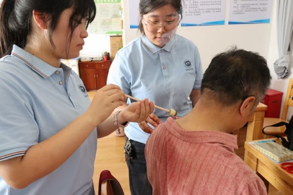 活動(dòng)現(xiàn)場(chǎng),學(xué)子們迅速分成多個(gè)小組,有條不紊地忙碌起來(lái)。健康監(jiān)測(cè)組的成員細(xì)致地為老人們測(cè)量血壓,耐心詢問(wèn)身體狀況,了解飲食習(xí)慣,提出有效建議,并普及高血壓防治知識(shí)。推拿服務(wù)區(qū)最為熱鬧,隊(duì)員們運(yùn)用課堂所學(xué),針對(duì)老年人常見的頸肩腰腿痛問(wèn)題,施展專業(yè)推拿手法。他們一邊按摩,一邊講解日常保健要點(diǎn)。“小姑娘手法真舒服,我這肩膀松快多了!”李大爺滿意地稱贊道。艾灸體驗(yàn)點(diǎn)艾煙裊裊,散發(fā)著特有的芳香。隊(duì)員們精選穴位,為有需求的老人進(jìn)行溫和艾灸,溫經(jīng)通絡(luò),驅(qū)散寒濕,不少老人表示身體感到陣陣暖意,十分舒暢。