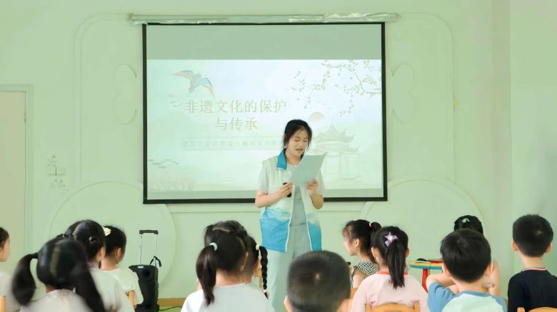 活動伊始,宣講團成員化身“非遺講師”,隊員們用生動形象的語言、色彩鮮艷的圖片,為孩子們打開了解常德非遺文化的窗口。從針法精妙、圖案精美的桃源刺繡,到線條流暢、寓意吉祥的剪紙藝術(shù);從氣勢恢宏、團結(jié)奮進的龍舟競渡,到蘊含東方智慧的象棋博弈……一項項扎根中華大地的非遺,化作可聽、可看的故事。在互動問答中,孩子們踴躍舉手,好奇追問“刺繡圖案有什么寓意”,傳統(tǒng)文化與童真思維碰撞出奇妙火花。