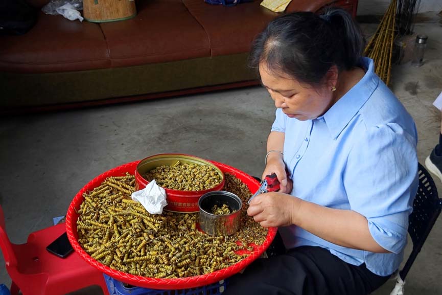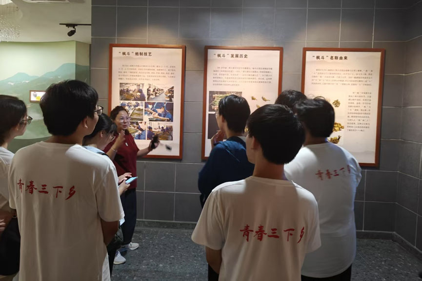 調研行程中,團隊特別走進霍山衛星石斛有限公司的手工生產基地,目睹傳統石斛加工技藝的傳承與創新。生產車間內,數十位村民圍坐在一起,熟練地進行著石斛鮮條的分揀、晾曬、纏繞等工序。阿姨將半干的石斛莖條在特制模具上精準纏繞:“這是制作楓斗的關鍵步驟,每根楓斗要繞12圈,松緊度全靠手感。”同時,公司采取“企業+農戶”模式,培訓村民掌握分揀、烘焙、塑形等10余項手工技藝,將分散的家庭式加工轉化為標準化工坊生產,目前已帶動十余戶村民在家門口就業,人均年收入數十萬元。