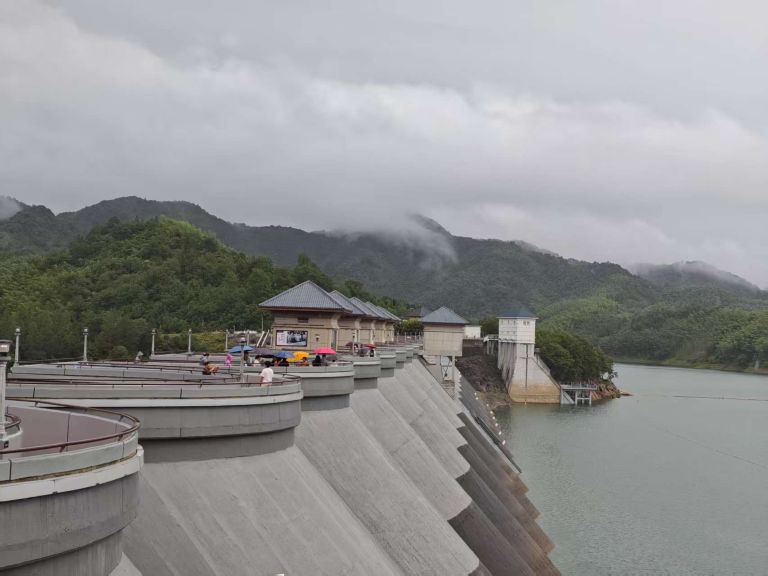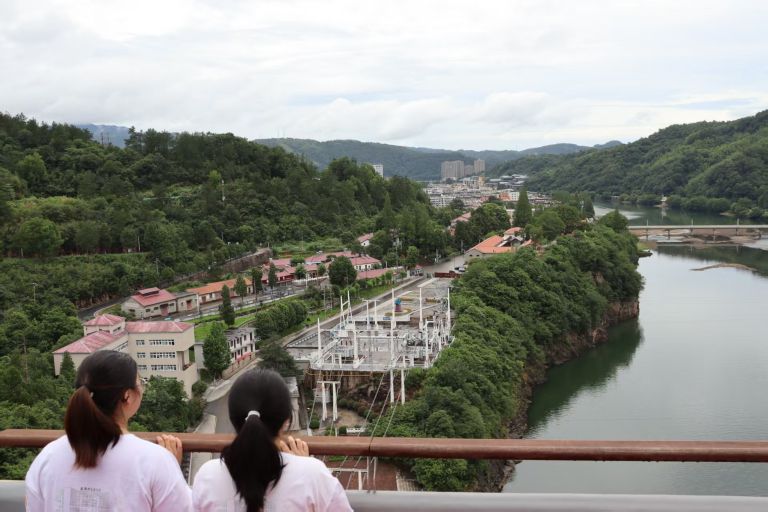 沿著彎曲的道路,實踐團隊登上大壩,實地觀察水庫的整體風貌和工程設施。站在壩頂,團隊成員俯瞰浩渺的水面,對水庫的規模和氣勢有了更直觀的感受。連拱壩獨特的建筑結構、堅固的壩體,以及周邊的配套設施,都展示著這座水利工程的科學性和先進性。