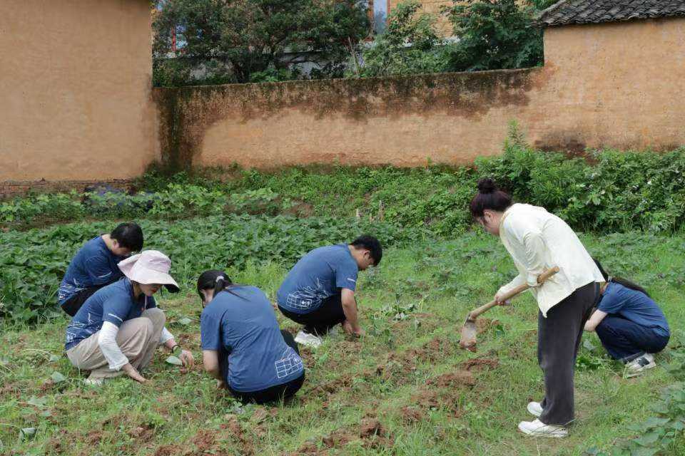 泥土中的課堂下午,我們跟隨村民下地種紅薯。揮鋤頭、挖土坑、埋薯苗……