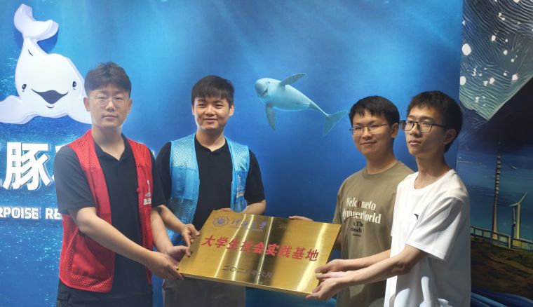 訪談尾聲,調研團代表河海大學向長江江豚科教中心授予“大學生社會實踐基地”銅牌,以此表達對科教中心在長江生態保護領域所作貢獻的誠摯謝意。