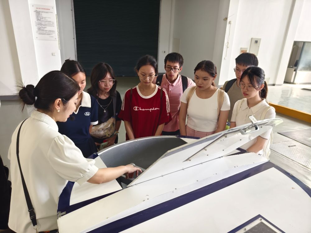 6月26日上午,調研團走進南京水利科學研究院鐵心橋模型試驗基地,在專業講解員的帶領下,深入參觀四大核心試驗廳——通航試驗廳、白鶴灘試驗廳、土工離心機試驗廳和長江下游試驗廳,講解員從專業視角分析長江航道發展以及兩岸經濟、生態建設的重點和難點,著重講解水利科研在港口、航道等發展發揮的核心作用,以及長江下游流域未來發展方向,為團隊研究提供重要理論基礎。