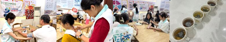 面韻鄉(xiāng)行突擊隊(duì)隊(duì)員在為社區(qū)居民義診和體制配茶的畫面 突擊隊(duì)成員攝