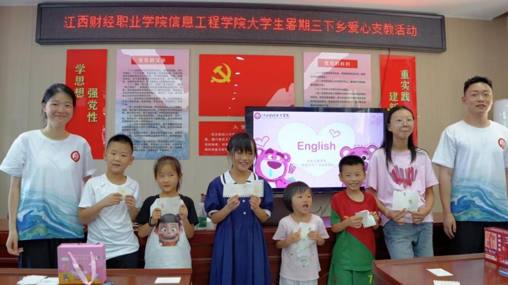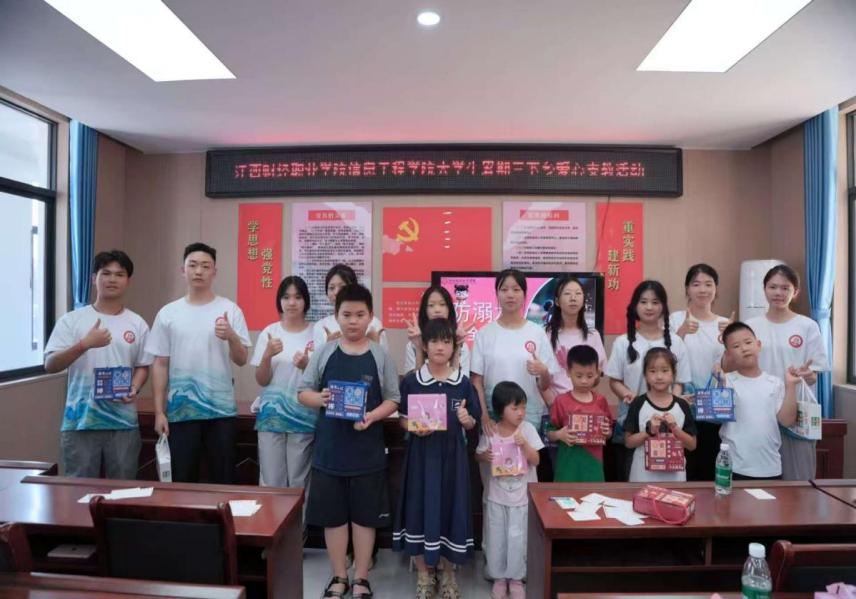 在國家鄉村振興戰略的澎湃浪潮中,教育振興成為點亮鄉村未來的關鍵火種,7月2日,江西財經職業學院信息工程學院“數智鄉行”社會實踐隊在彭剛老師的帶領下,走進九江市江洲鎮官場村,開展主題為“數智賦能鄉村教育”的愛心支教活動。實踐隊充分發揮專業優勢,將數字化技術與創新教學模式相結合,為當地兒童帶來生動有趣的特色課程,并贈送學習用品,以實際行動助力鄉村教育發展。