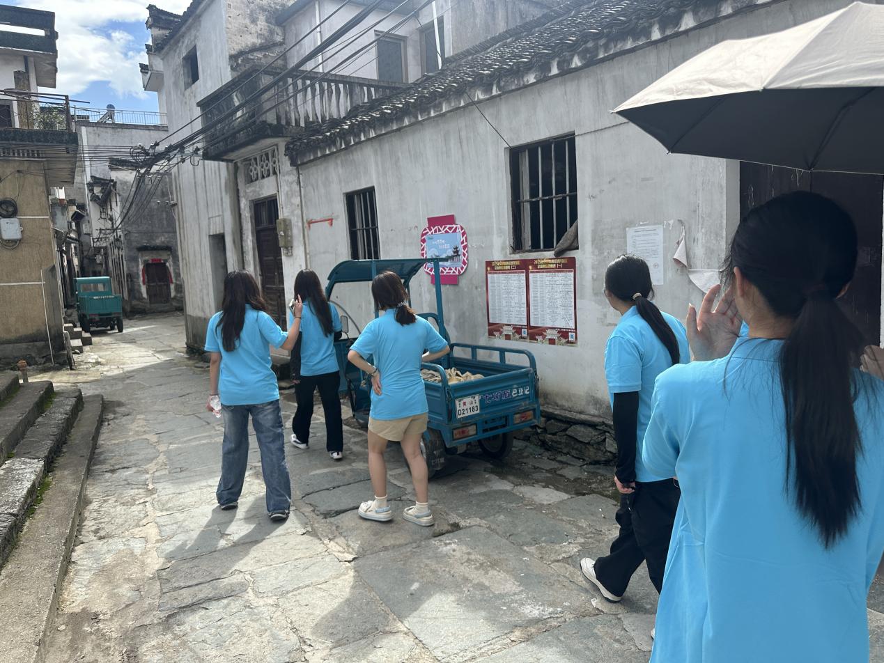 6月25日上午,實踐團赴黃山市杞梓里鎮開展實踐。抵后考察村落,掌握徽派建筑等特色,為墻繪積累素材。期間,實踐團參觀紅色革命陳列館和王茂蔭紀念館,感悟精神、汲取力量。下午,實踐團結合考察成果,與當地政府人員研討,最終確定以“徽韻杞梓里·生態新鄉村”為主題的墻繪方案。
