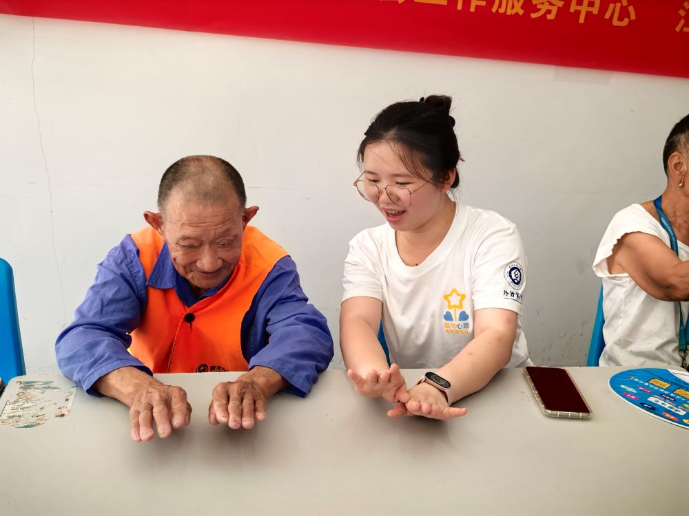 為推廣傳統養生文化,提升老年人健康保健意識,7月2日,"星與心愿"志愿服務隊走進大橋福利院開展八段錦知識講解及手指八段錦操教學活動,通過一對一指導幫助老人掌握傳統養生技法。