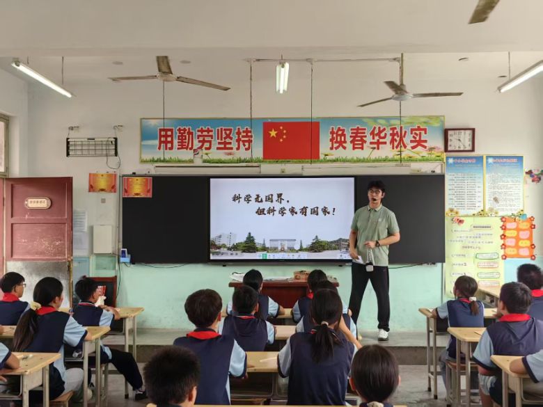 7月3號,河南師范大學(xué)物理學(xué)院科學(xué)家精神宣講團來到輝縣市上八里鎮(zhèn)中心學(xué)校以宣講PPT的形式,帶領(lǐng)同學(xué)們感悟?qū)儆谥袊茖W(xué)家的科研精神與民族氣節(jié)。