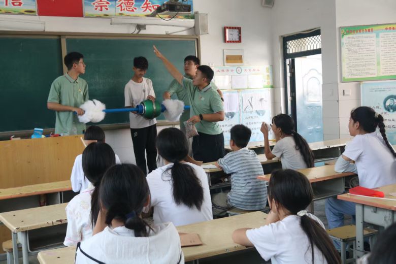 河南師范大學(xué)物理學(xué)院“移動(dòng)科技館”志愿服務(wù)團(tuán)隊(duì)走進(jìn)上八里中心學(xué)校為深入學(xué)習(xí)宣傳貫徹黨的二十大精神,在社會(huì)實(shí)踐大課堂中增長才干、學(xué)思踐悟,7月3日上午,河南師范大學(xué)物理學(xué)院“移動(dòng)科技館”志愿服務(wù)團(tuán)隊(duì)走進(jìn)上八里中心學(xué)校開展一系列實(shí)踐活動(dòng)。