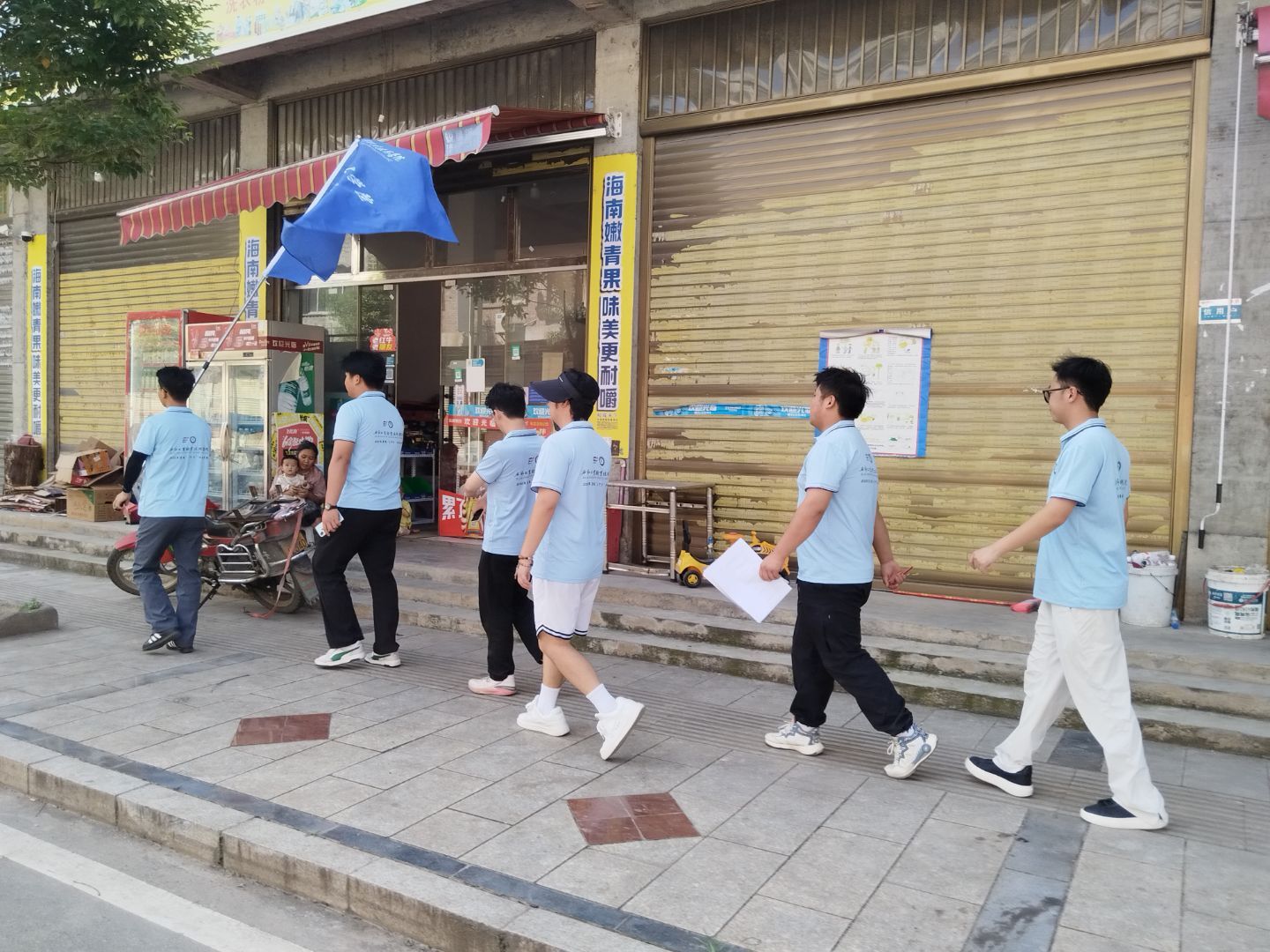 圖為隊員們身著統一隊服,以挺拔的身姿、昂揚的姿態整齊列隊。隨著隊長一聲令下,大家步伐鏗鏘,精神抖擻地朝著當地小學行進。一路上,隊員們手持調查問卷與宣傳資料,眼神堅定,心中滿是對即將開展的校園調研的期待與使命感。整齊的隊伍宛如一條流動的青春風景線,引得沿途村民駐足關注,而他們即將用專業與熱情,為校園禁毒防艾宣傳筑牢堅實根基。