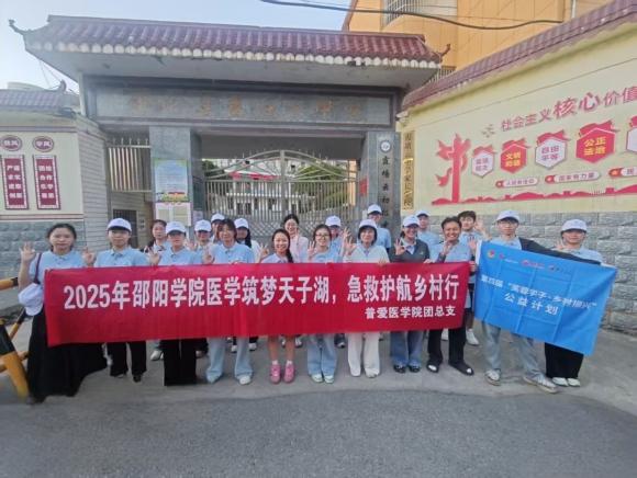 (圖為“救在身邊,醫暖蔡山團”志愿團在邵陽縣霞塘云中學集合薛云曦攝)