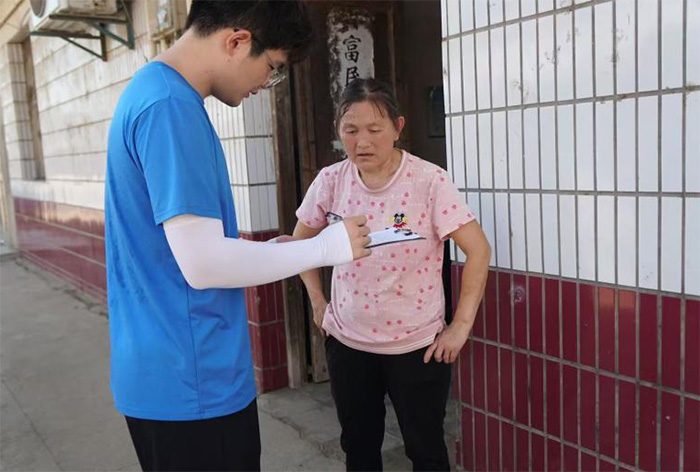 團隊在村莊發放調查問卷(攝影:王立夫,王子璇)