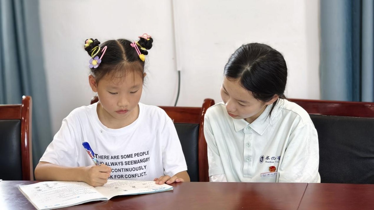 下午,團隊迅速調(diào)整狀態(tài),分成教育幫扶組與鄉(xiāng)村調(diào)研組,同步推進兩項重點工作。教育幫扶組隊員化身“臨時教師”,針對孩子們在數(shù)學(xué)應(yīng)用題、英語單詞記憶等方面的學(xué)習(xí)難點,進行一對一輔導(dǎo)。輔導(dǎo)過程中,隊員們還注重培養(yǎng)孩子們的學(xué)習(xí)興趣和思維能力,引導(dǎo)他們主動思考、積極探索。
