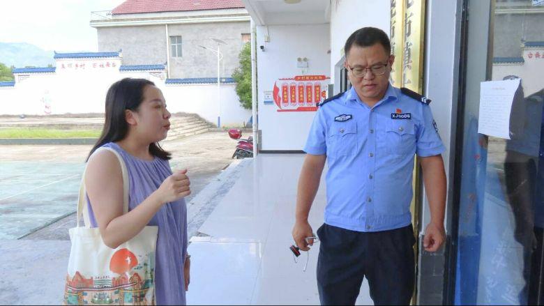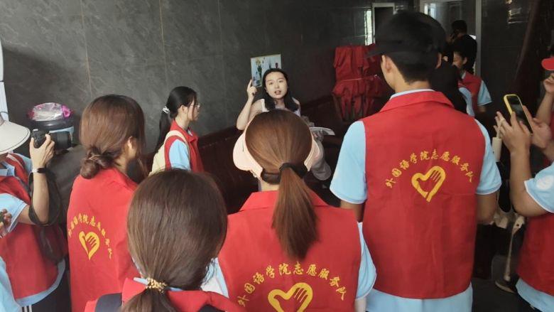 圖為外國語學院團總支負責人王琪斐與村委會進行交流(于蕓 攝)