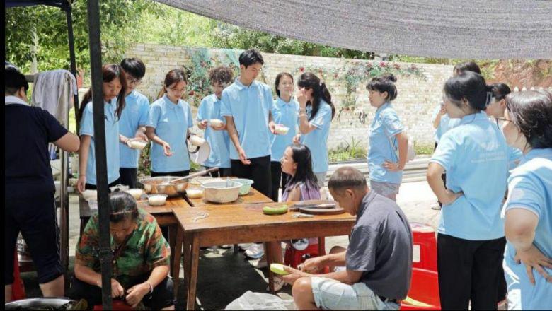 圖為外國語學院Sunshine Action志愿服務小隊于當地用餐(張心雨 攝)
