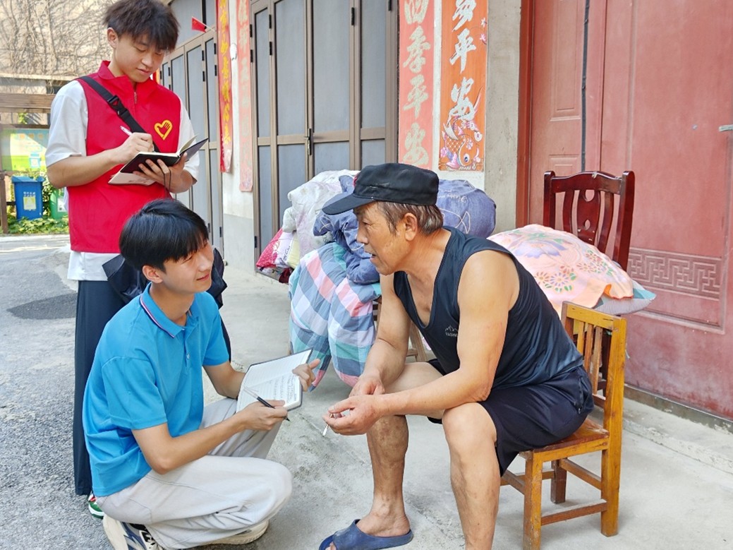 圖為實(shí)踐團(tuán)成員調(diào)研當(dāng)?shù)卮迕駥?duì)大學(xué)生基層就業(yè)工作的認(rèn)識(shí)和了解情況。孫含冰攝