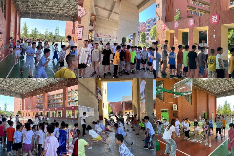 在校園風雨棚內,團隊小老師們有序組織籃球、排球和足球課程。課前,老師們帶領同學們進行充分的熱身活動,從關節活動到慢跑拉伸,每一個環節都細致入微,有效降低運動受傷風險。課堂以寓教于樂的游戲形式展開,如籃球接力賽、排球趣味顛球、足球障礙闖關等,瞬間點燃了孩子們的學習熱情。在歡快的氛圍中,孩子們全情投入,緊跟老師的教學節奏,不僅體驗到運動的樂趣,更在潛移默化中發掘出自己的運動潛能。