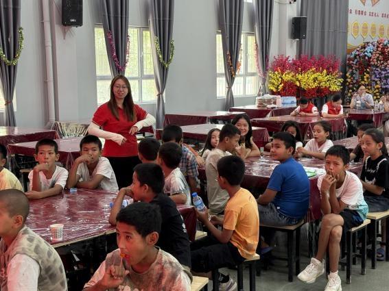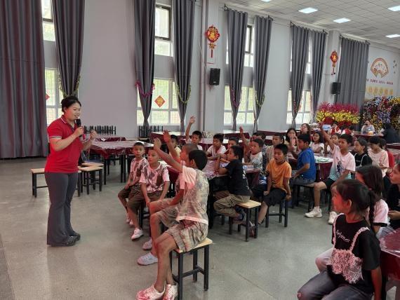 緊隨書記動員,實踐團負責人連章潔為孩子們帶來意義深遠的“開班第一課”。她通過生動的講解,讓孩子們了解了“七一”建黨節背后的歷史故事。在課程最后,“我們是中華民族,我們要永遠跟黨走”的堅定誓言在課堂響起,孩子們清澈的眼眸中閃耀著強烈的認同感。“沒有共產黨就沒有我們今天的好日子!”孩子們稚嫩卻堅定的聲音,正是紅色基因在心中生根的見證。