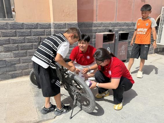 2025年7月4日上午,新疆政法學院“戈壁育紅心”愛國主義教育實踐團與第三師四十四團十一連的天福社區攜手,開啟了“六個一工程”的“三下鄉”社會實踐活動。首先進行了開班儀式,天福社區黨支部書記對此次活動表示了高度認可,他深入闡釋活動主旨,強調在戈壁熱土傳承“熱愛祖國、無私奉獻、艱苦創業、開拓進取”的兵團精神對鑄牢中華民族共同體意識的時代意義,并熱情呼吁社區青少年踴躍參與,感召大家在體驗中汲取精神養分。