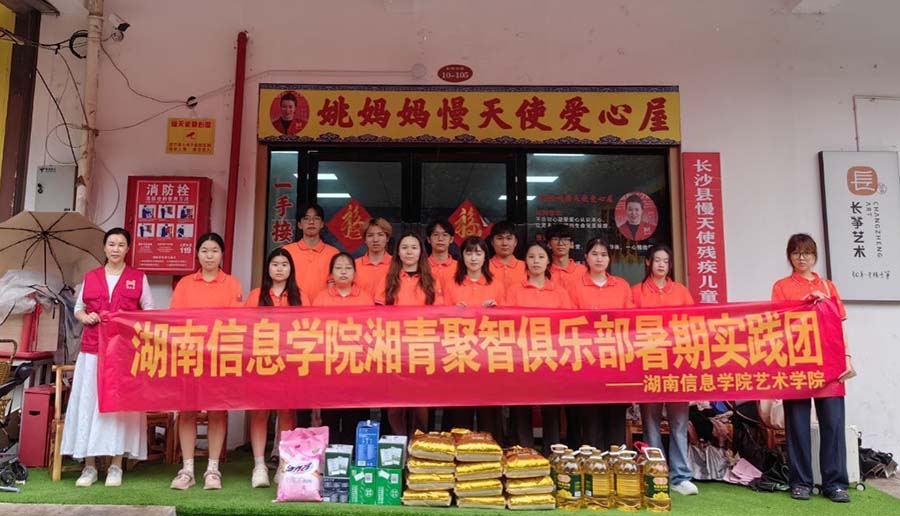 在隨后舉行的啟動(dòng)儀式上,姚媽媽和義工媽媽們對(duì)湖南信息學(xué)院藝術(shù)學(xué)院“湘青聚智俱樂部”暑期社會(huì)實(shí)踐團(tuán)的到來再次表達(dá)了熱烈的歡迎和由衷的感謝。 隨后,在團(tuán)隊(duì)指導(dǎo)老師的組織下,全體成員在愛心屋前拍攝了正式的啟動(dòng)儀式合影,正式拉開了為期10天的暑期社會(huì)實(shí)踐序幕。
