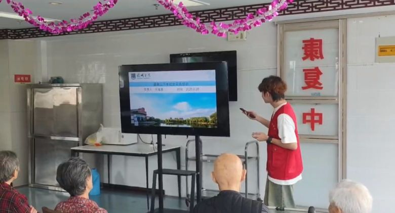 下午16時,實踐團(tuán)隊來到合肥市瑤海區(qū)九久夕陽紅老年護(hù)理院,將紅色精神轉(zhuǎn)化為關(guān)愛老人的實際行動,以開展反詐知識宣講與慰問活動為主要方式將“為人民服務(wù)”這種內(nèi)容核心切實轉(zhuǎn)化為保護(hù)老人財產(chǎn)安全,讓紅色精神在民生服務(wù)中落地。